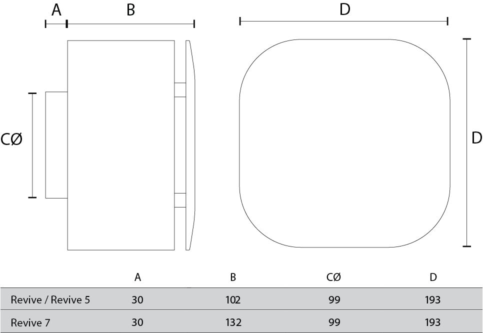 Revive dokáže odsávat až 216 m³/h. Během instalace můžete upravit nastavení tak, aby vyhovovala menším prostorům. Montažní pracovník si také může vybrat mezi ovládáním do potrubí a na stěnu. Výběr se provádí pomocí intuitivního LED displeje.