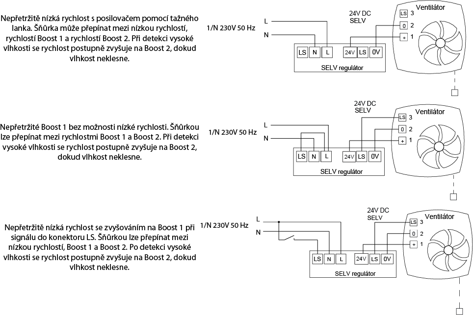 Univerzální kuchyňský nebo koupelnový ventilátor s nepřetržitým nebo přerušovaným provozem. Nastavitelné volnoběžné otáčky mezi 22 a 47 m³/h a zvýšené otáčky 54, 108 a 216 m³/h. Denní záznamník a počítadlo provozních hodin jsou standardní výbavou. 5letá záruka. Integrovaná funkce zámku. Nastavitelný dynamický senzor okolní vlhkosti. Časovač nastavitelný mezi 1 a 30 minutami. Integrovaný režim zvýšení výkonu aktivovaný šňůrkou, senzorem vlhkosti, vypínačem nebo dálkovým ovládáním. Otevřete přední mřížku.