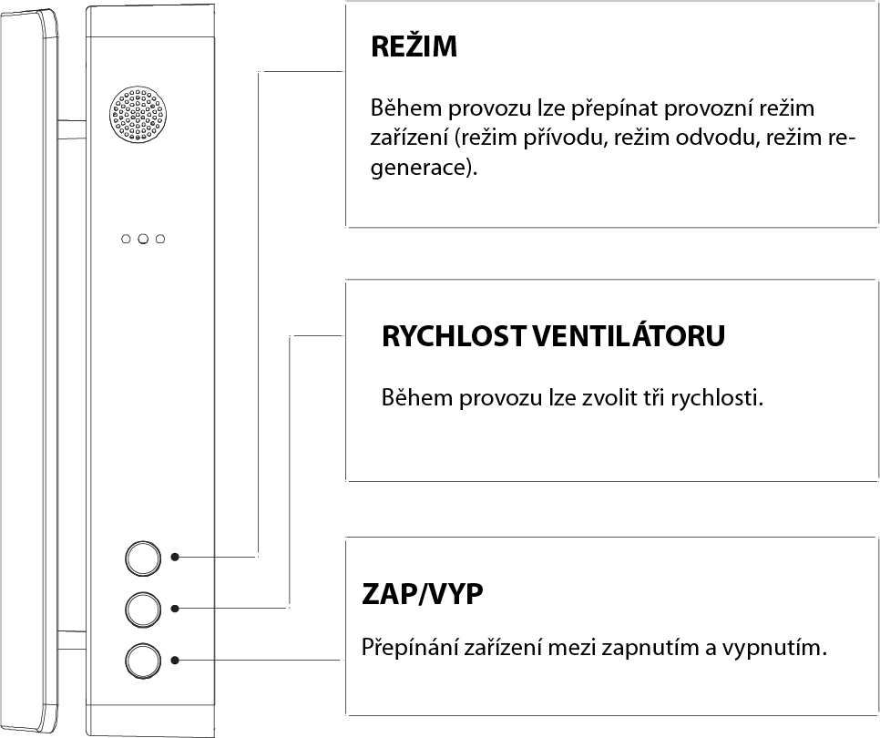 Reverzní cyklus ventilátoru „Push Pull“ v režimu rekuperace tepla průměrný průtok větracího vzduchu je efektivně snížen na polovinu.