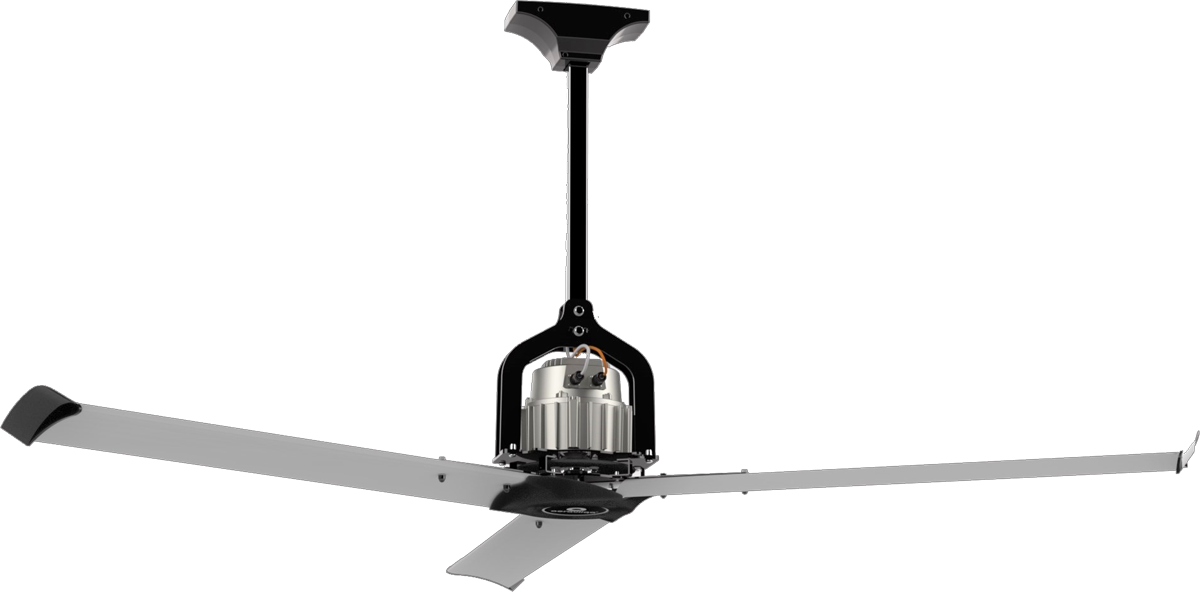 HVLS ventilátory - do 80.554 m³/h, axiální, EC motor, podstropní, Modbus, hliníkové lopatky, proměnnými ot., reverzibilní s CTRL-HS ovladač.