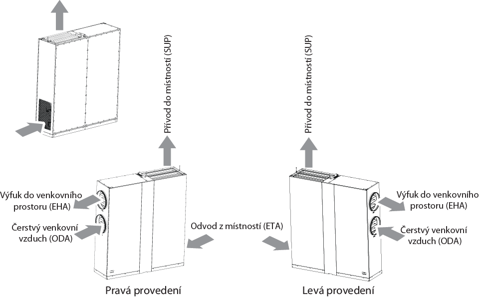 Jednotky jsou vybaveny bypassem. Obtoková klapka se v létě otevírá pro režim volného chlazení.