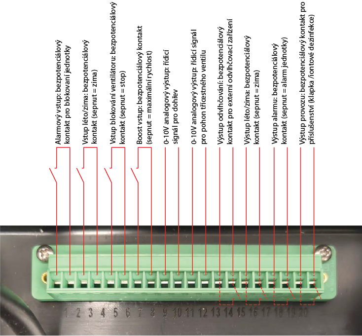 Elektronisches Steuerungssystem mit vier integrierten Temperatursensoren und einem Sensor für relative Luftfeuchtigkeit zur Regelung von Belüftung, Freikühlung/Freiheizung, Wärmetauscher-Abtauung und Vor-/Nachheizungssystemen.