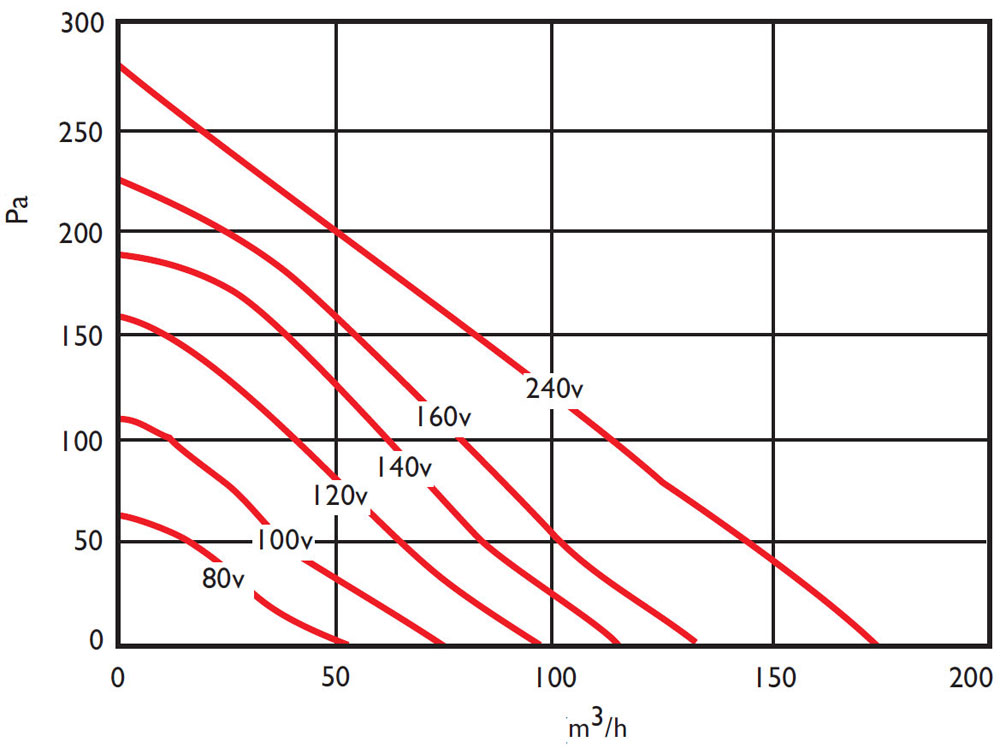 - Elektrický příkon pohonu ventilátoru včetně zařízení pro ovládání motoru při maximálním průtoku: 182W