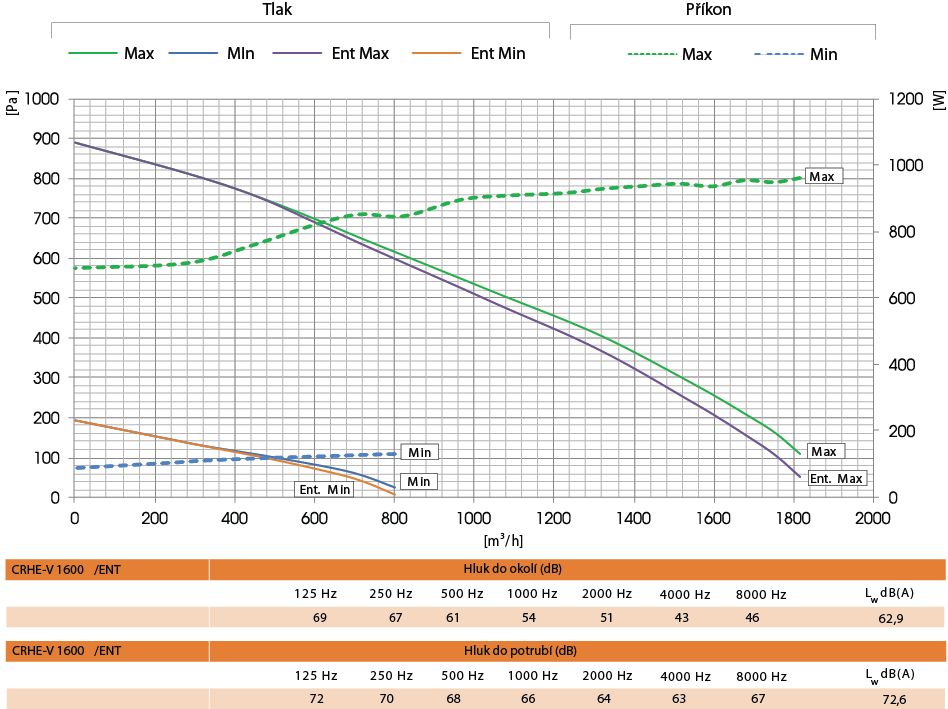 - Hladina hluku: 72,6 / 62,9 LwA do potrubí / do okolí